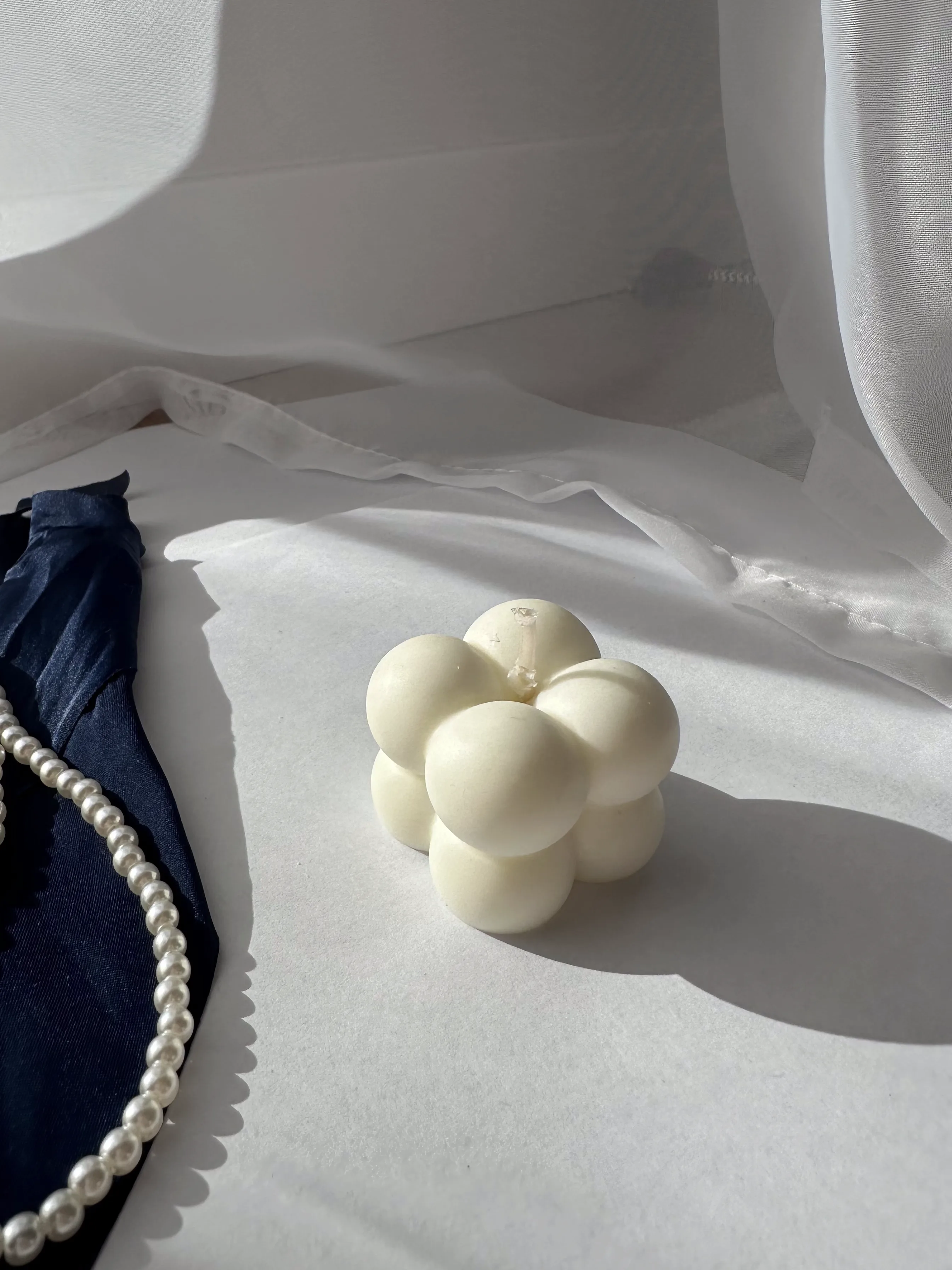 Świeca sojowa mała Bubble to naturalna, ręcznie robiona świeca dekoracyjna z wosku sojowego. Jej nowoczesny, geometryczny kształt w formie drobnych bąbelków dodaje wnętrzu oryginalności i minimalistycznego uroku. Doskonale sprawdzi się jako subtelna ozdoba salonu, sypialni czy biura oraz jako pomysł na ekologiczny, ręcznie wykonany prezent.